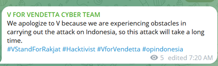 V FOR VENDETTA CYBER TEAM Announcement and Attack on Indonesia: