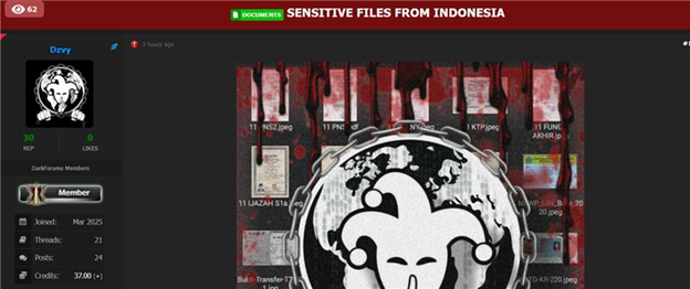 On April 2, 2025, The V for Vendetta Cyber Team has leaked sensitive files from Indonesia on a dark forum.