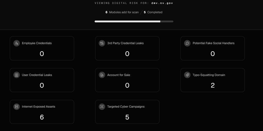CyberXTron Live Risk Scan Results against “dmv.nv.gov”